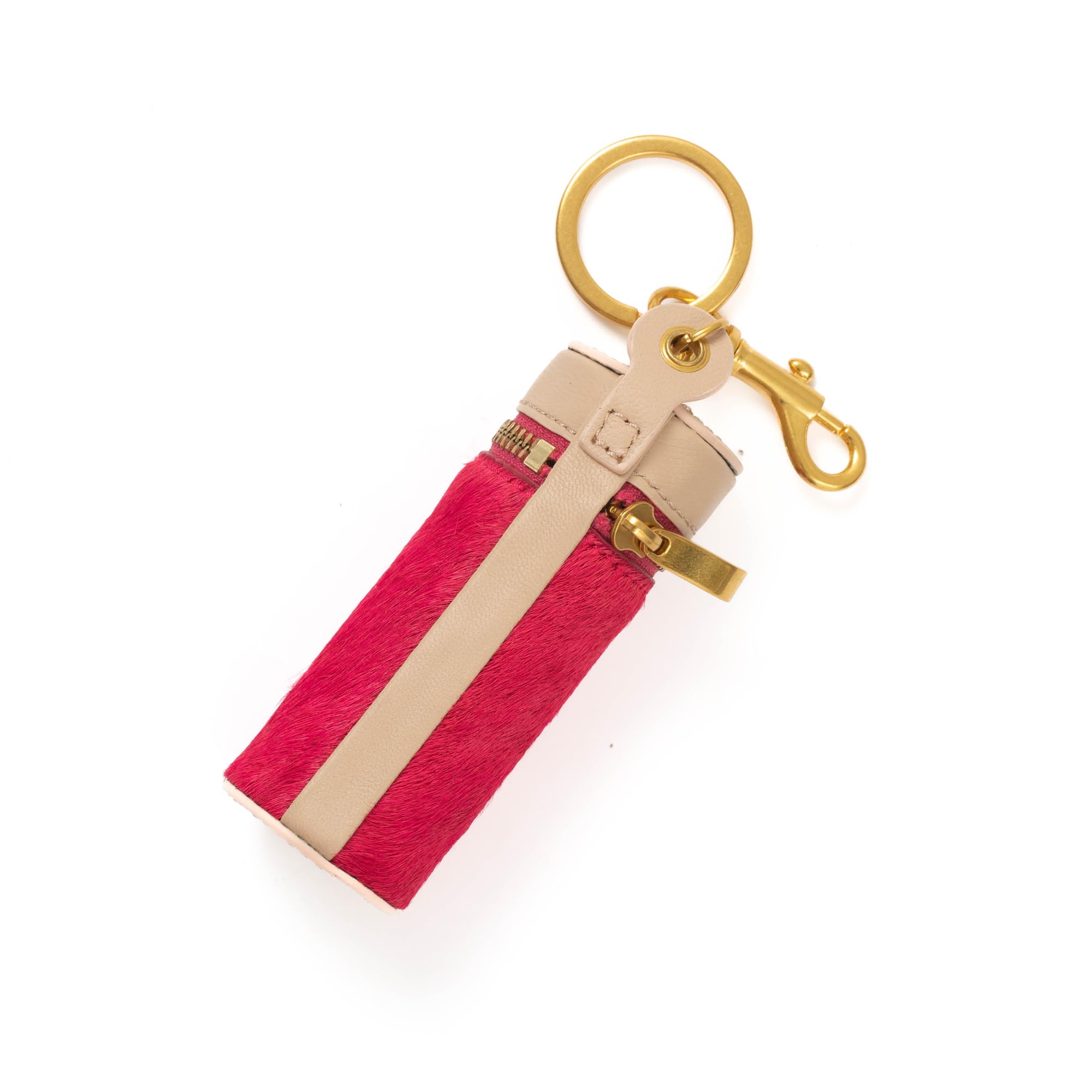 Cockatoo Nappa Leaeher Zipper Lipstick Case with Keyring Chapstick Holder Keychain