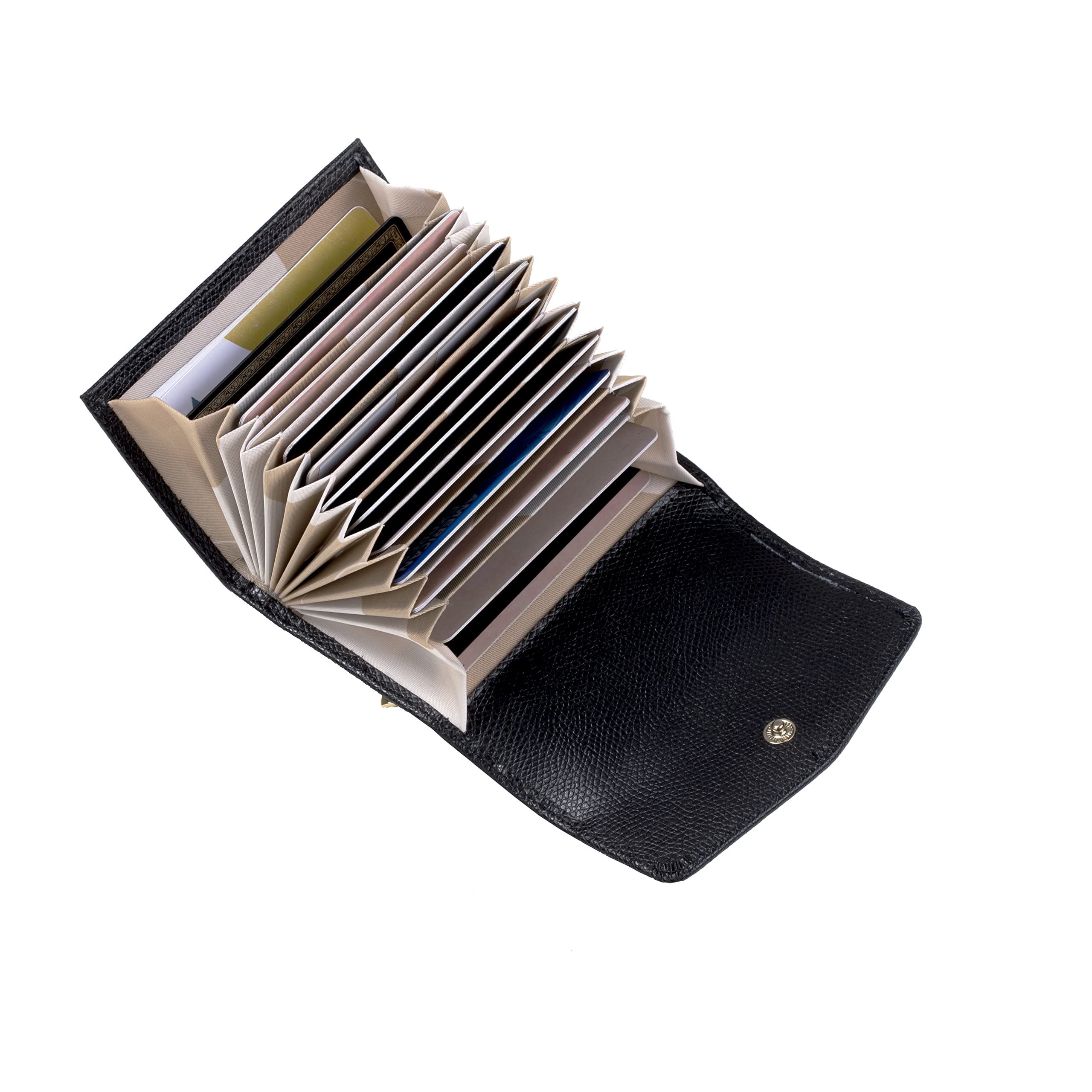 Cockatoo RFID Credit Card Holder, Genuine Leather Snap Card Case Accordion Small Wallets for Women (Black)